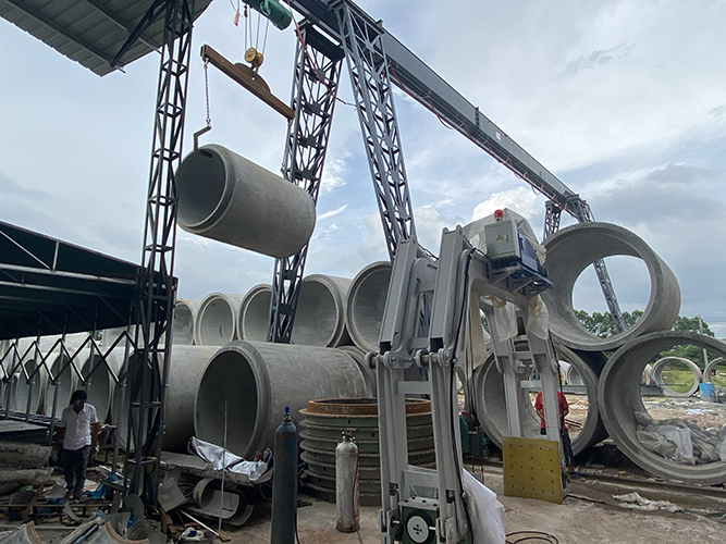 一、带帽生产。这种形式是为了保证管插口尺寸的精度,在水泥排水管设备完成管的插口成型后,将插口模留在管子上,带着插口模进行养护,等养护结束后再把插口模脱卸掉。这样,管插口的尺寸可以做到很高的精度。这种形式可以生产插口有凹槽的钢承口式顶管。