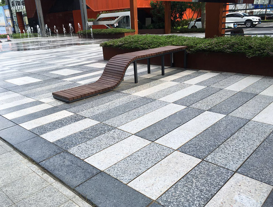 色彩丰富、可仿制各种类花岗岩的面层、肌理、质感,其效果完全可以与花岗岩媲美,根据设计的要求,在地面铺装跳色中表现很优异。